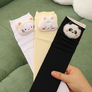 堆堆袜女冰冰袜春夏秋立体卡通熊猫纯色卷边长筒袜天鹅绒中筒袜子