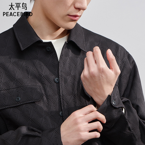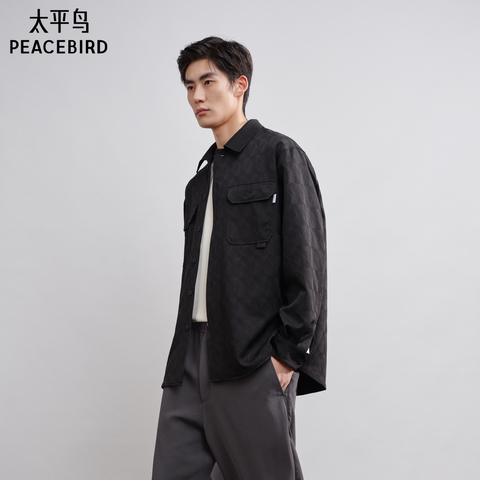 太平鸟男装 休闲衬衫春季提花肌理男士衬衣潮流衬衫外套