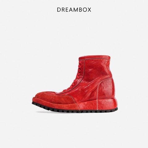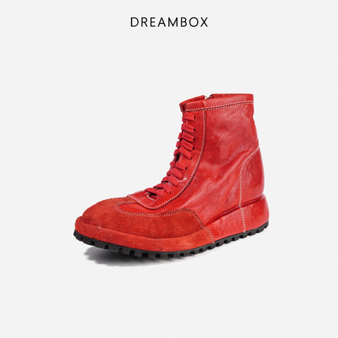 DREAMBOX钧博水洗马皮高帮工装鞋2025秋冬新款防滑厚底增高马丁靴