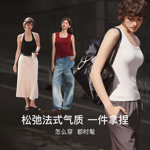 【新品】ubras宽肩带挂脖白色吊带背心女上衣胸垫免穿文胸t恤内搭