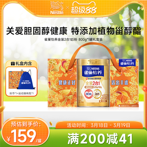 买1组双听礼盒赠刻度随行杯*1,买3组双听礼盒赠同款正装*1,【旗舰店】雀巢怡养金装中老年奶粉2罐装,关爱父母健康,特别添加护胆固醇成分,呵护中老年身体!