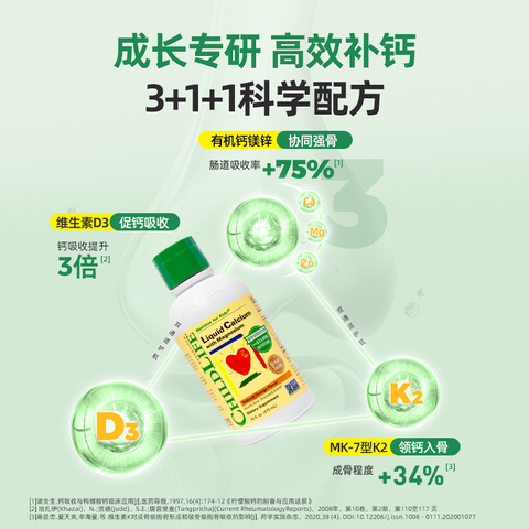 【自营】ChildLife童年时光大白瓶 儿童婴儿钙镁锌口服液体钙*2瓶