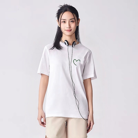 100%纯棉半心刺绣爆款白色短袖T恤情侣男女装2026新款
