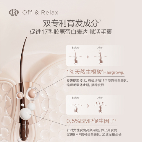 【直播间限定】OffRelax防脱育发液/头皮精华,专为防脱固发设计,有效强韧发根,改善掉发问题,促进头发生长,呵护健康头皮!现在购买享专属优惠,赶紧抢购!