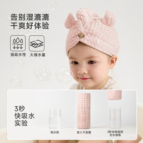 宝宝必备!尼多熊华夫格干发帽,超强吸水速干,柔软亲肤不刺激,包头设计更贴心,呵护宝宝娇嫩头皮!婴幼儿专用,舒适又实用!
