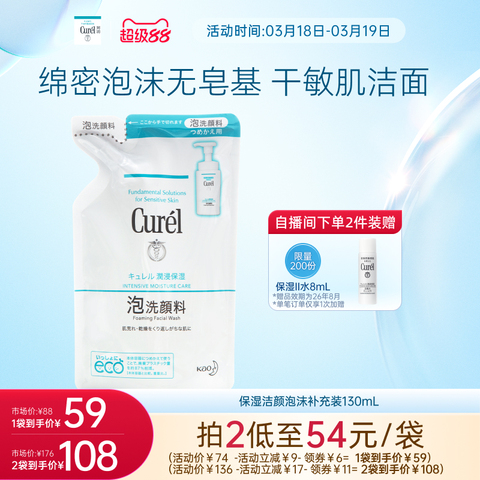 77¥ HU006 G43XUBTl0oM¥ https://m.tb.cn/h.i5SXDHH 【超级88】珂润保湿/控油泡沫洁面洗面奶正装/补充装敏感肌