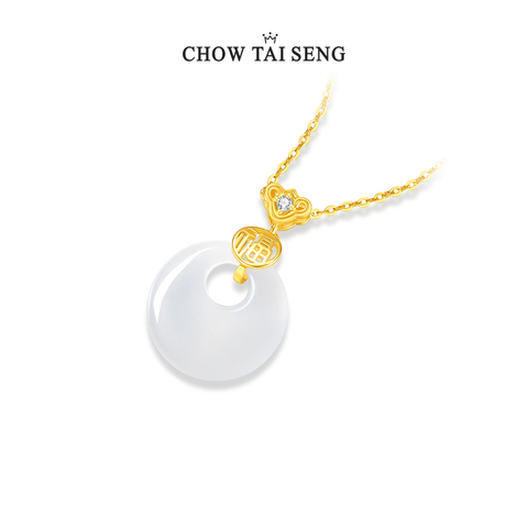 周大生福气平安扣项链,S925银材质,玉髓吊坠,国风新中式设计,适合送女友或生日礼物,典雅大气,寓意吉祥,品质有保障。