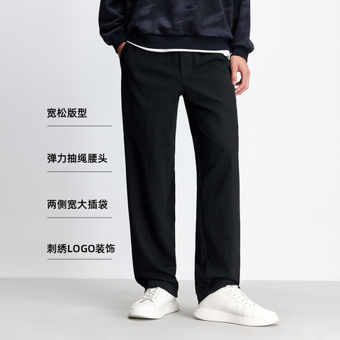 杰克琼斯男装春季休闲裤卫裤黑色刺绣宽松紧腰头纯色长裤子男士