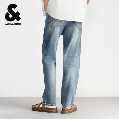 [903凉感智行牛仔裤]杰克琼斯男装春复古中蓝水洗宽松直筒长裤子