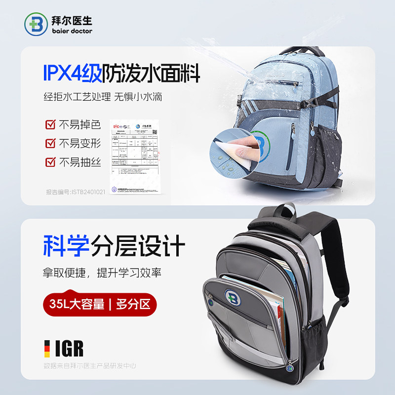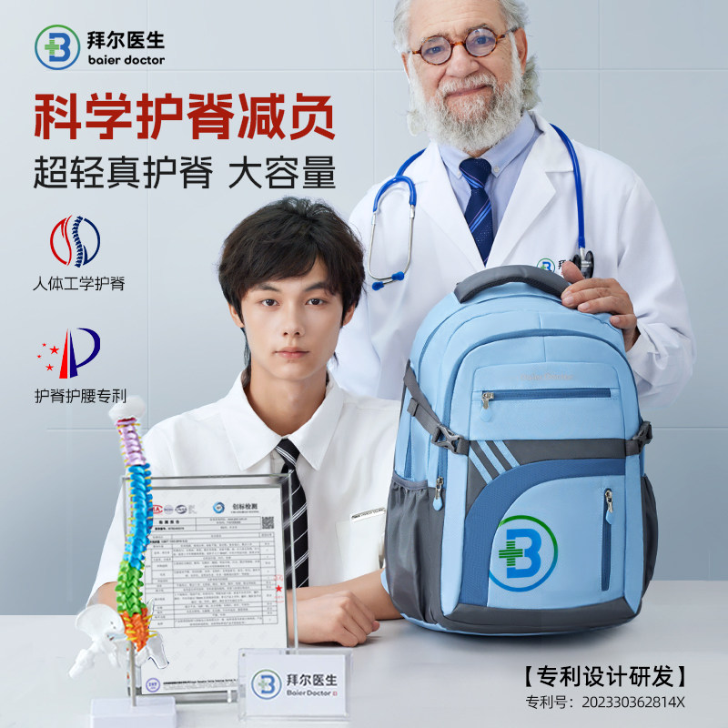 拜尔医生儿童书包男女生初高中生