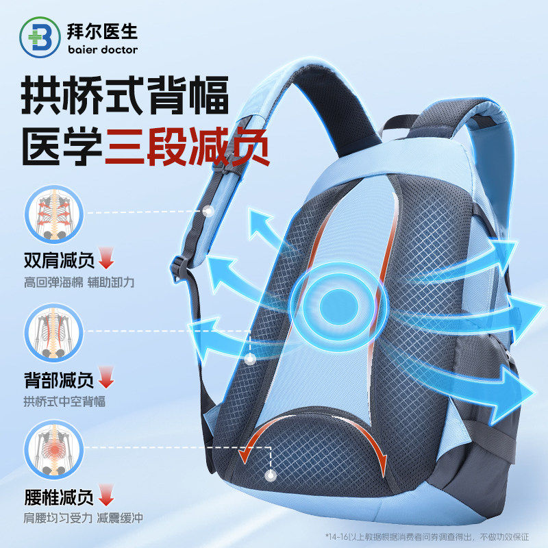 28¥ HU293 3VyaUBTNkCG¥ https://m.tb.cn/h.iTafVPE 拜尔医生儿童书包女生初中生大容量减负护脊书包男生高中生双肩包
