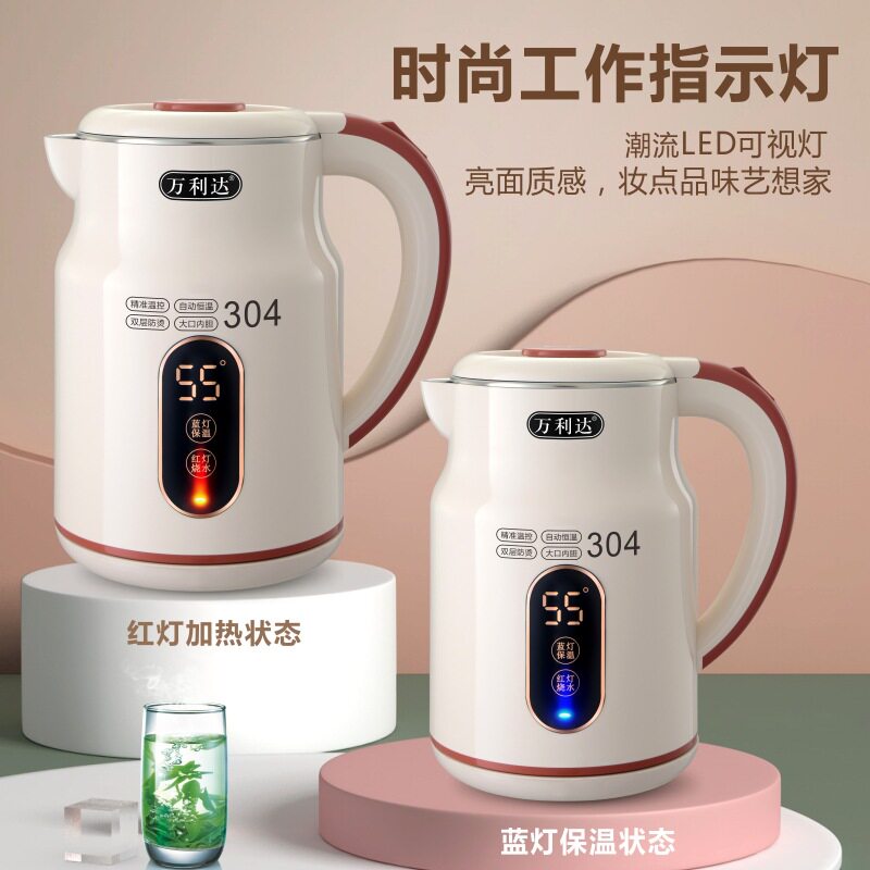 万达利电热水壶家用烧水壶304不锈钢保温壶自动开水壶