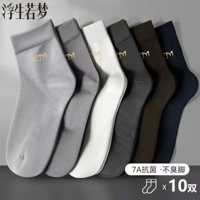 防臭男士中筒薄款吸汗透气抗菌纯色百搭运动袜
