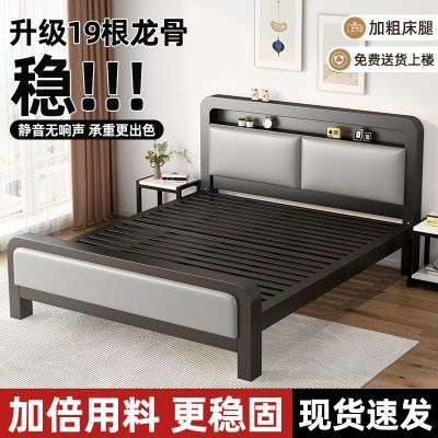 铁艺床落地双人床主卧简约轻奢宿舍出租房简易床铁架床加固承重