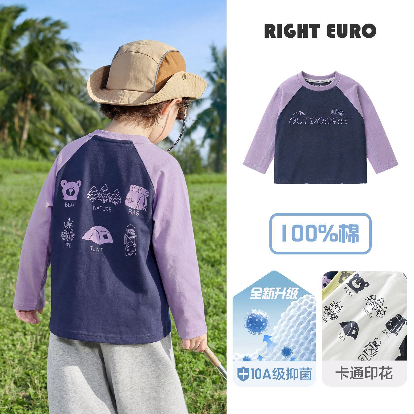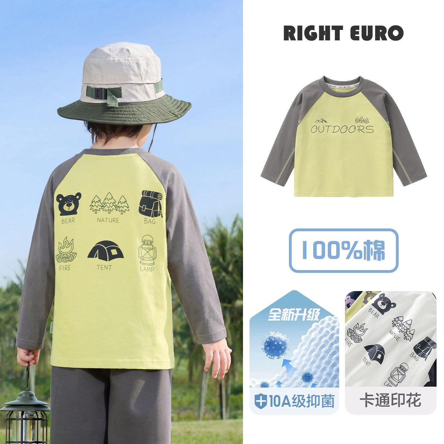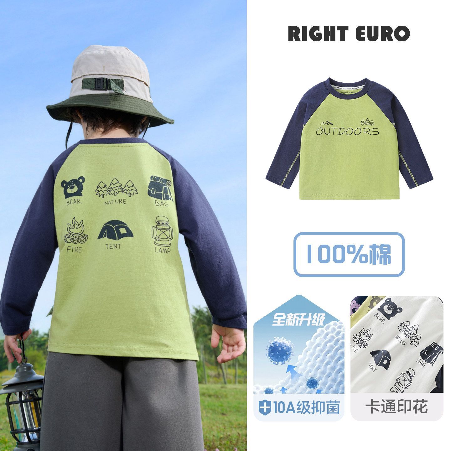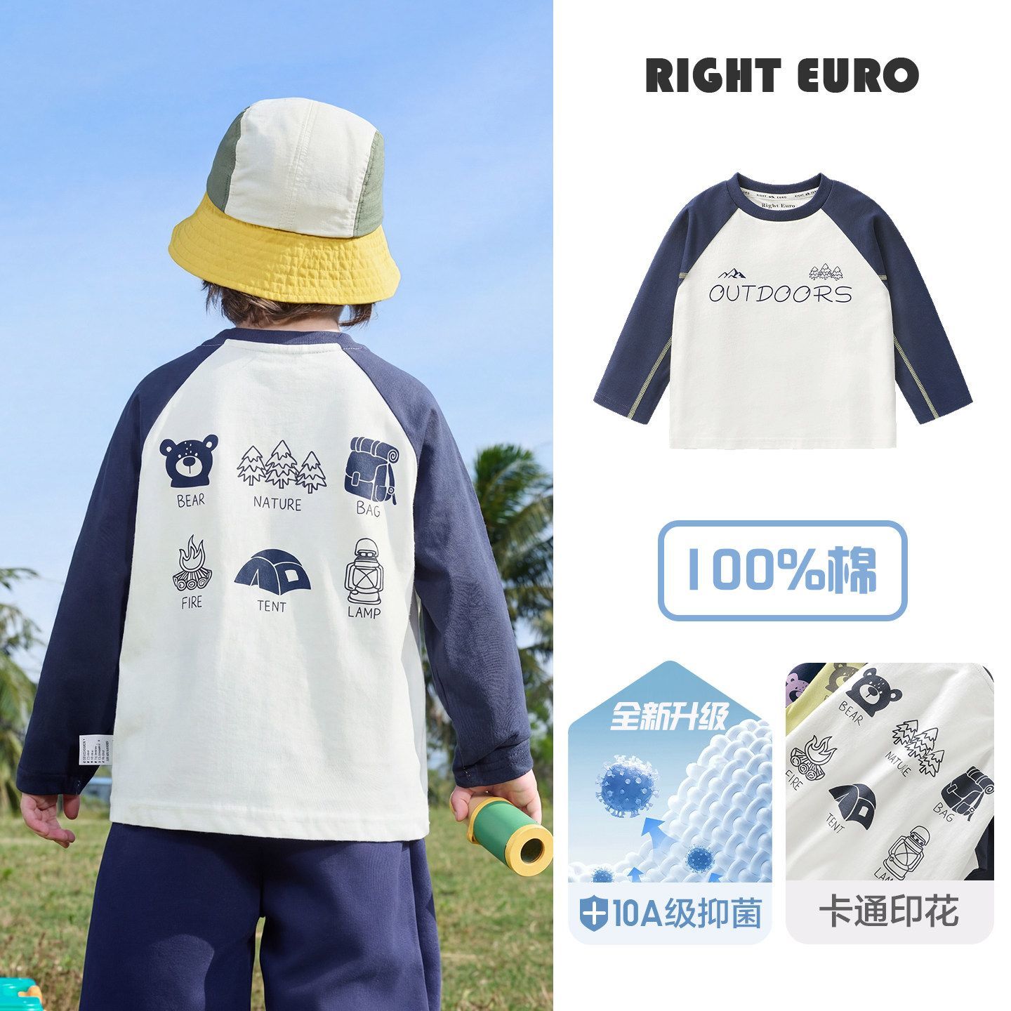右欧男童纯棉长袖T恤春装童装户外抑菌宝宝春秋款儿童宝宝打底衫