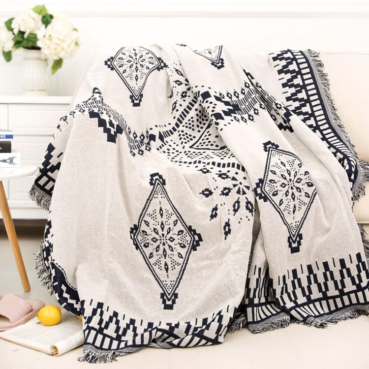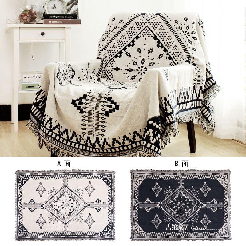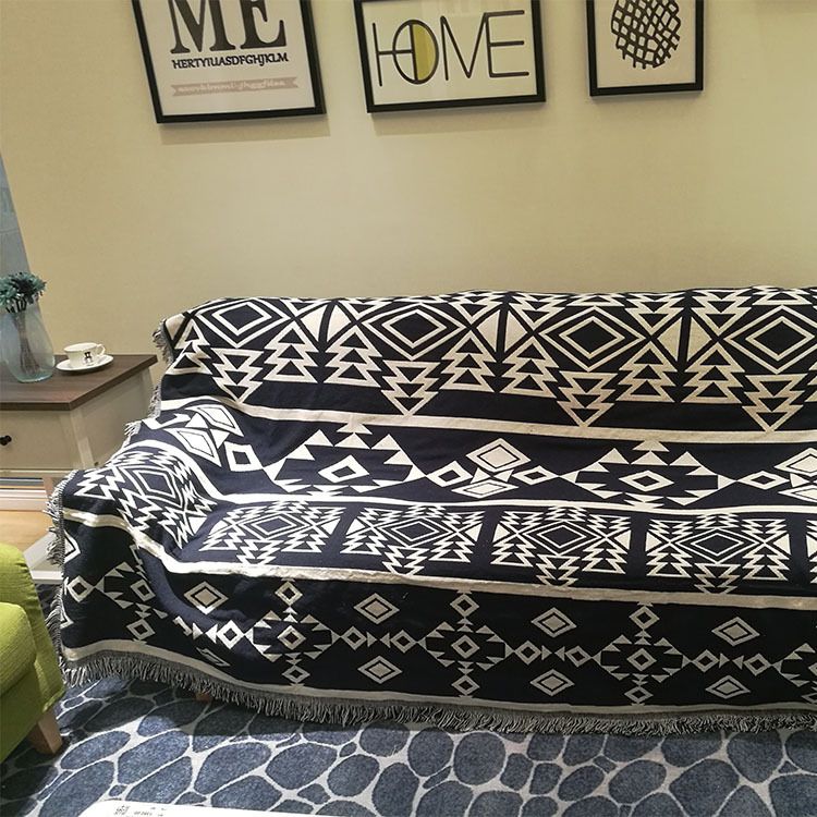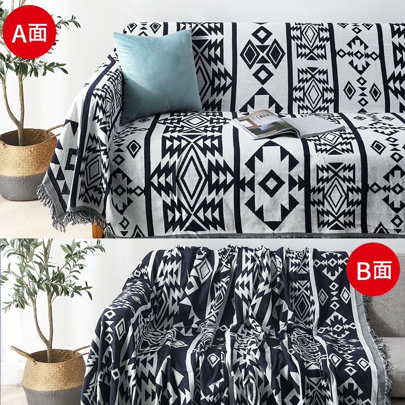 时尚简约沙发巾盖布 黑白棉麻沙发垫桌布 多人单人组合沙发套罩布
