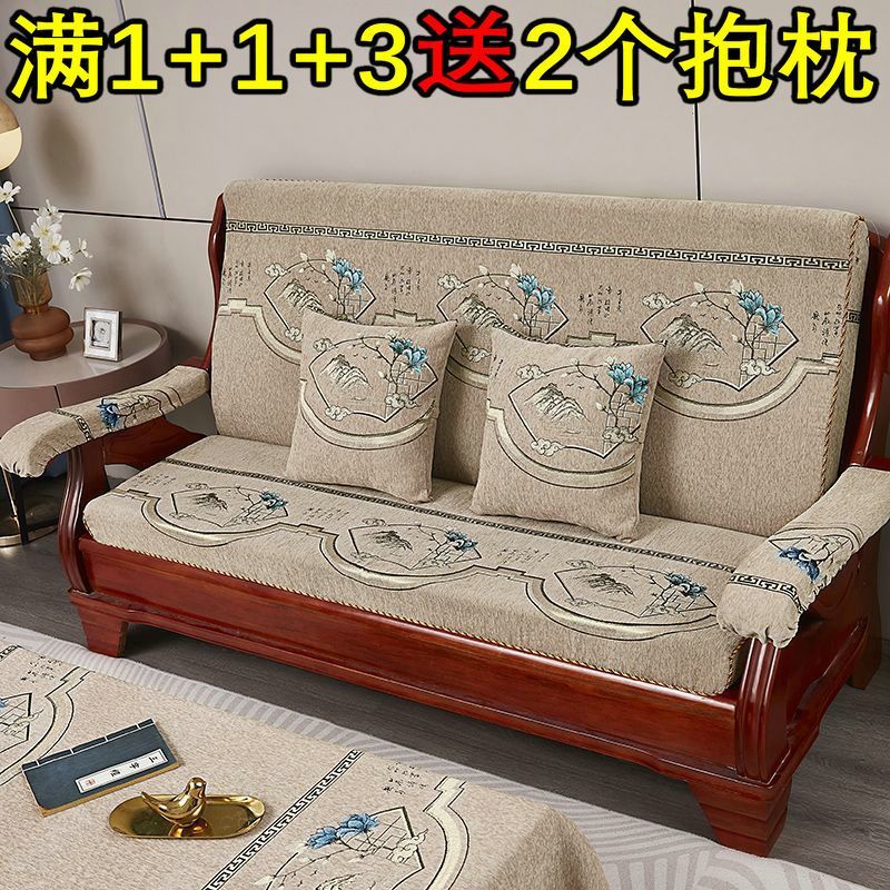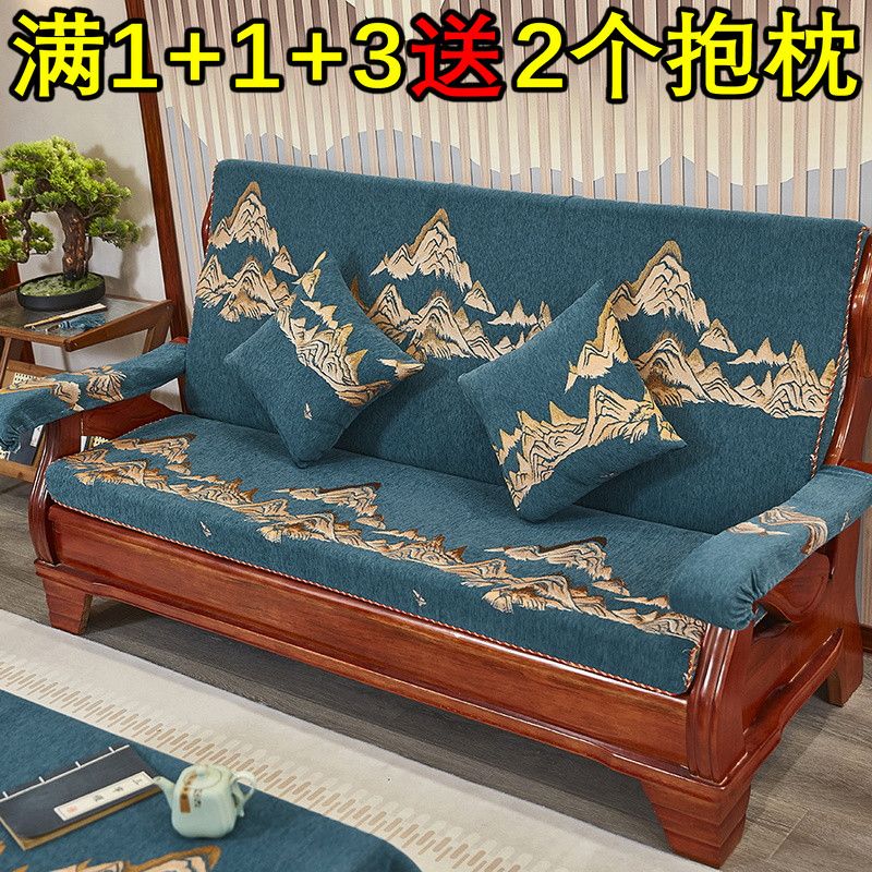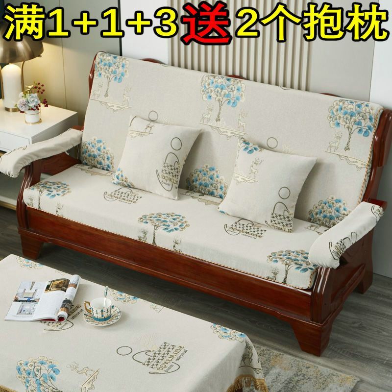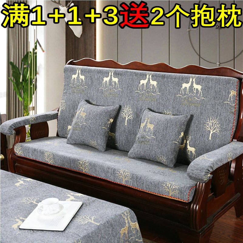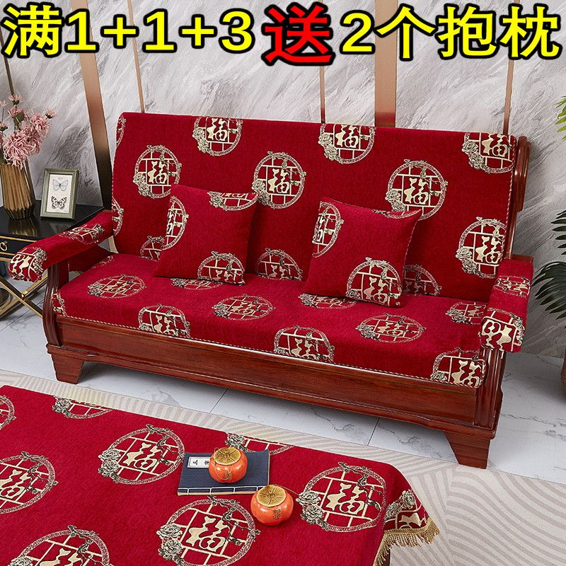 加厚实木通用联邦老式木头沙发垫连体单人三人防滑坐垫带靠背四季