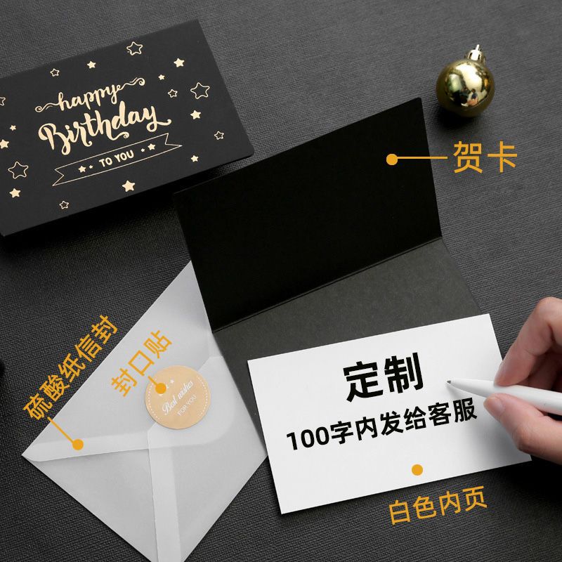 七夕黑色生日贺卡diy定制代写字小卡片带信封情侣男女手工礼物